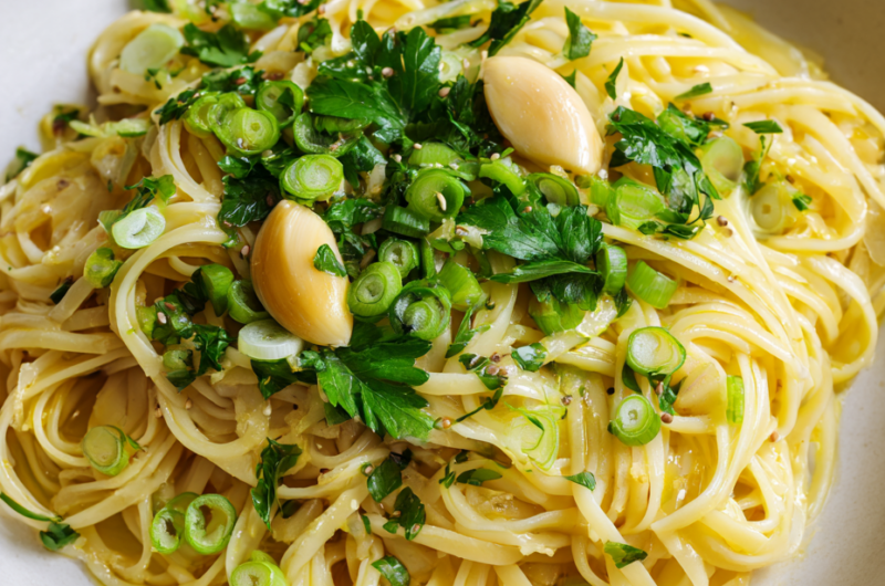 - Transfer the noodles to serving plates. Garnish with additional garlic or herbs if desired, and serve immediately while they’re hot and fragrant.