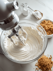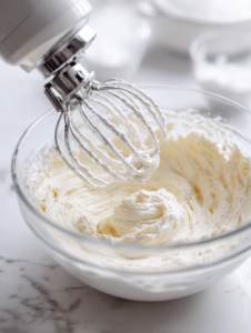 - In a separate chilled bowl, whip the heavy cream until soft peaks form, about 3-4 minutes, until it becomes fluffy and airy.