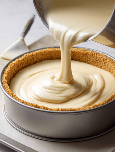 - Spoon a generous layer of pumpkin mousse over the cake, spreading gently with a spatula to create an even surface.